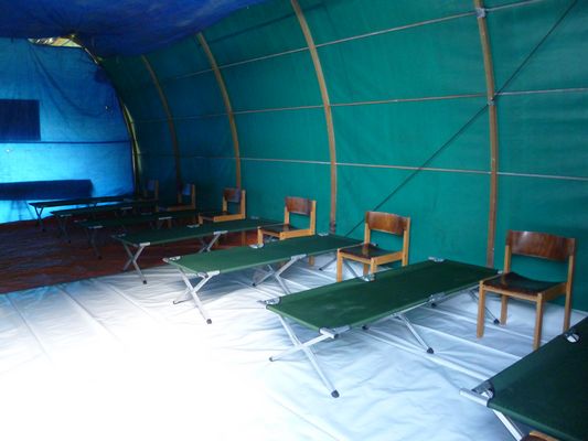 Vandaar uit lopen we weer door de grote tent heen en gaan de slaapplekken van de gasten even bekijken, moest even lachen bij binnenkomst, herrinneringen uit mijn diensttijd kwamen boven.