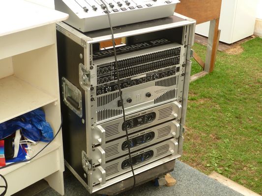 en er staat apparatuur om de sk50 die iets verder staat en goed is voor zo'n 400 watt te voorzien van audio.