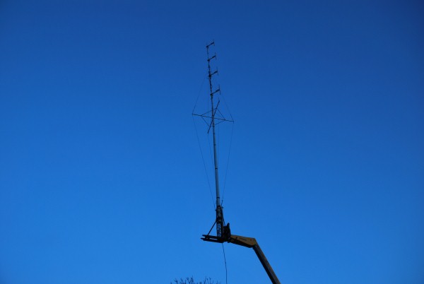 Kleine man heeft er een kruis in gemaakt,en het opzetten was nu goed te doen de mast samen met verrijker brachten de bovenste antenne op 35 meter hoogte.